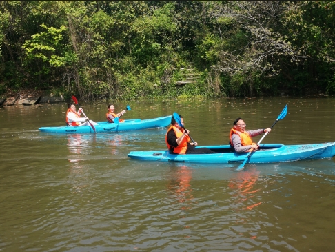 野炊的余興未盡,真人CS、皮劃艇,騎馬以及射箭場館又將我們帶入快樂而刺激的活動之中。首先皮劃艇體驗,只見湖面上幾位同事盡情地劃動雙槳,感受水的柔美和風(fēng)的輕拂,這一刻仿佛置身于大自然,在雙槳的劃動下,湖面波光漣漣,勇士們忘卻了城市的喧囂,陶醉在船艦前行中。