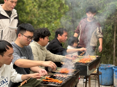 燒烤,這是一種充滿人間煙火氣息的烹飪方式。在燒烤的過程中,伙伴們圍坐在火堆旁,烹飪美食、分享美食,傳遞著溫暖。此情此景,讓人想起了小時候和家人圍坐在一起烤火的溫馨,透析出家庭成員歡聚一堂的快樂。這份情感,鏈接了同事間和諧的紐帶,隨著炊煙的飄逸,濃縮了快樂和美味。